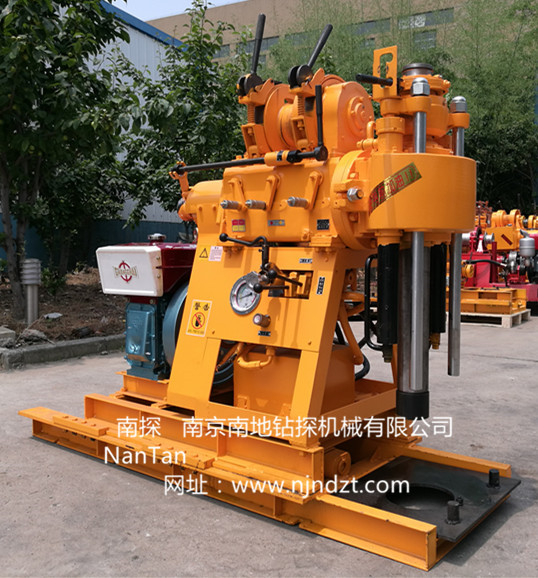 XY-200型鉆機集合了目前市場流行的XY-1、XY-1B、XY-1A等小型鉆機的主要功能和特點設計而成的。即采用XY-1的油壓自動給進,XY-1B的大模數齒輪傳動系統(tǒng),XY-1A的寬范圍轉速的較大扭矩輕型回轉鉆機。 為使本機的適用性更廣泛,滿足不同用戶的需求,推出移機型XY-200(YJ)型鉆機(帶移機功能)、增加了水泵(不帶移機) 的XY-200-1型和帶移機帶水泵功能的XY-200-2型鉆機。鉆機、柴油機(或電動機)安裝在同一底座上。鉆進深度可達200米。