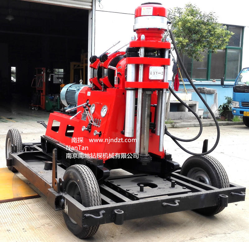 GXY-2型巖芯鉆機設計先進,布局合理、結構緊湊,操作靈活、堅固耐用,可拆性好,便于搬遷、修理方便。主要用于地表及坑道對固體礦床的金剛石、合金鉆探,可用于工程地質勘察及地下水勘探,淺層石油,探礦、天然氣勘探、水文、水井、堤壩灌注、坑道通風、排水鉆探等工程孔鉆進以及小型鉆機灌注樁孔鉆進施工等。